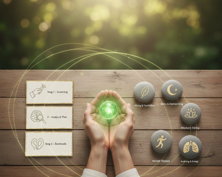Helhetsbaserad hälsa genom QRMA Bio-Scanning, energibalans och personlig vägledning.