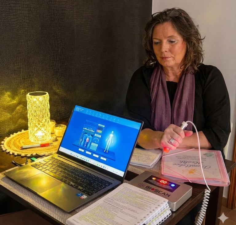 Helhetsbaserad hälsa genom QRMA Bio-Scanning, energibalans och personlig vägledning.
